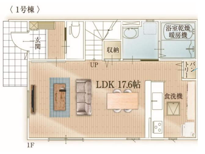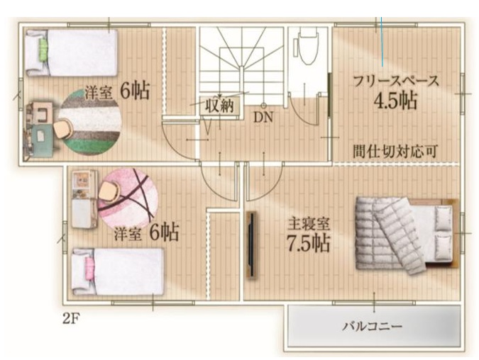 | 設備・条件 | 南道路/トイレ2か所/駐車場2台以上/間取り変更可能/リビングダイニング15畳以上/リビングに階段あり/対面キッチン/食器洗い乾燥機/パントリー/浴室乾燥機あり/バス・トイレ別/洗濯機置き場/独立洗面台/バルコニー/フラット35利用可/ | ||