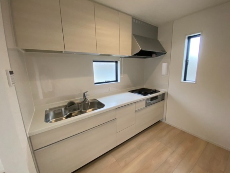 | 設備・条件 | 平坦地/耐震構造/住宅性能評価付き/前道6m以上/トイレ2か所/駐車場あり/24時間換気システム/TVモニタ付インターホン/防犯カメラ/人感センサー/リビングダイニング15畳以上/システムキッチン/給湯/コンロ3口以上/浴室乾燥機あり/バス・トイレ別/洗濯機置き場/独立洗面台/シャワートイレ/シャンプードレッサー/バルコニー/ウォークインクローゼット/床下収納/シューズインクローゼット/フラット35利用可/ | ||