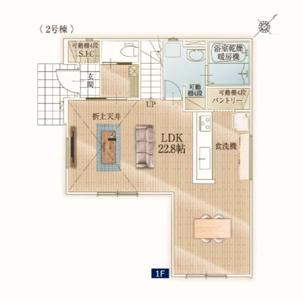 設備・条件 南道路/トイレ2か所/駐車場2台以上/リビングダイニング15畳以上/リビングに階段あり/カウンターキッチン/システムキッチン/食器洗い乾燥機/パントリー/コンロ3口以上/浴室乾燥機あり/バス・トイレ別/洗濯機置き場/独立洗面台/バルコニー/ウォークインクローゼット/シューズインクローゼット/
