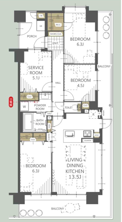 | 間取り/間取り詳細 | 3SLDK / LDK13.5帖 / 洋室6.3帖 / 洋室4.5帖 / 洋室6.3帖 / S5.1帖 | ||