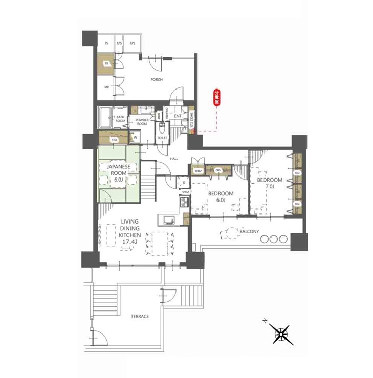 | 間取り/間取り詳細 | 3LDK / LDK17.4帖 / 洋室7.0帖 / 洋室6.0帖 / 和室6.0帖 | ||