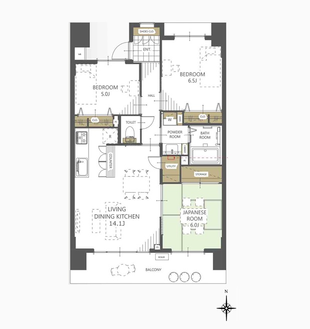 | 間取り/間取り詳細 | 3LDK / LDK14.1帖 / 洋室6.5帖 / 和室6.0帖 / 洋室5.0帖 | ||