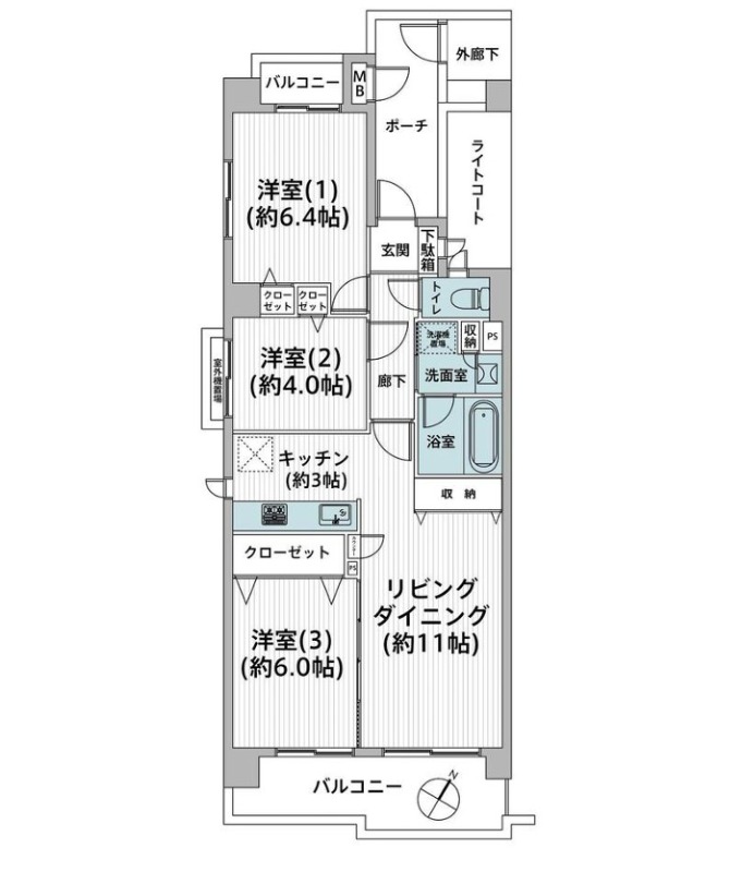 | 間取り/間取り詳細 | 3LDK / LDK11帖 / 洋室6.4帖 / 洋室6.0帖 / 洋室4.0帖 | ||