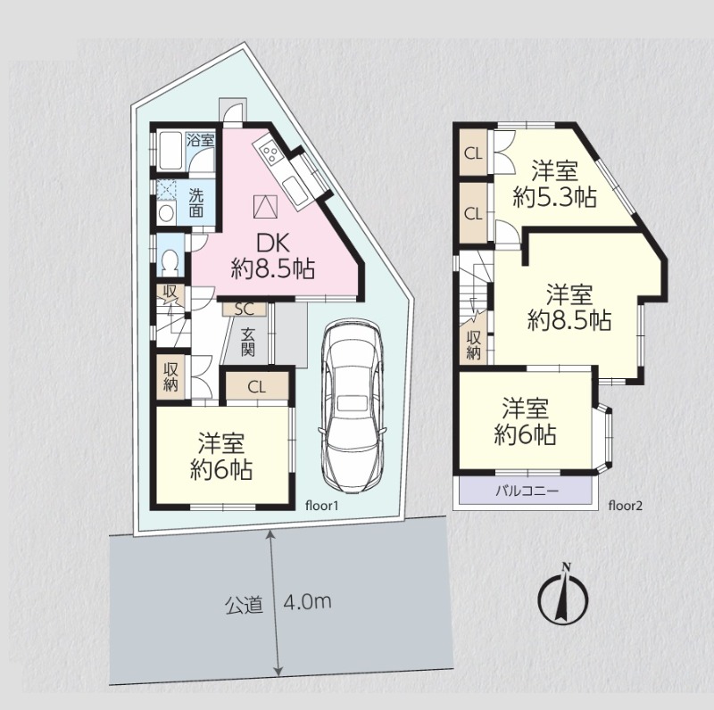 | 間取り/間取り詳細 | 4DK / DK8.5帖 / 洋室6.0帖 / 洋室8.5帖 / 洋室6帖 / 洋室5.3帖 | ||