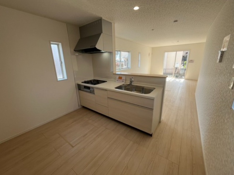 | 設備・条件 | 平坦地/制震構造/住宅性能評価付き/南道路/トイレ2か所/駐車場2台以上/24時間換気システム/TVモニタ付インターホン/防犯カメラ/人感センサー/照明器具付き/リビングダイニング15畳以上/対面キッチン/カウンターキッチン/システムキッチン/給湯/コンロ3口以上/浴室乾燥機あり/バス・トイレ別/洗濯機置き場/独立洗面台/シャワートイレ/シャンプードレッサー/ルーフバルコニー/床下収納/クローゼットシューズボックス/フローリング/フラット35利用可/ | ||